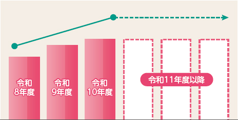 | 納めていただく「子ども・子育て支援金」は、加入する医療保険制度、所得や世帯の状況などによって異なります。令和10年度までに段階的に金額は上がりますが、令和11年度以降は負担が増えることはありません。